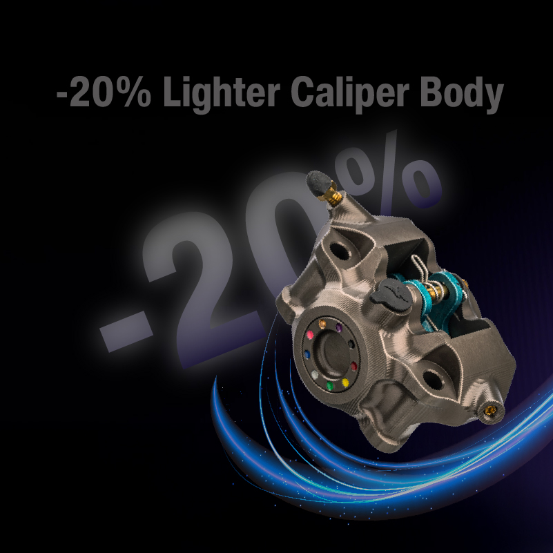 20% lighter caliper body. Delivers more agile handling. Compatible with Moto3 race bikes.